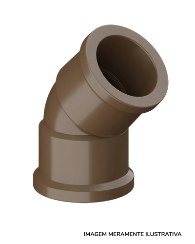 Conector utilizado para alterar a direção do fluxo em tubulações em um ângulo de 45 graus. Ideal para ajustes de percurso em sistemas hidráulicos, fabricado em PVC, cobre ou outros materiais resistentes. Observação: Verifique os modelos e medidas no ato da compra.